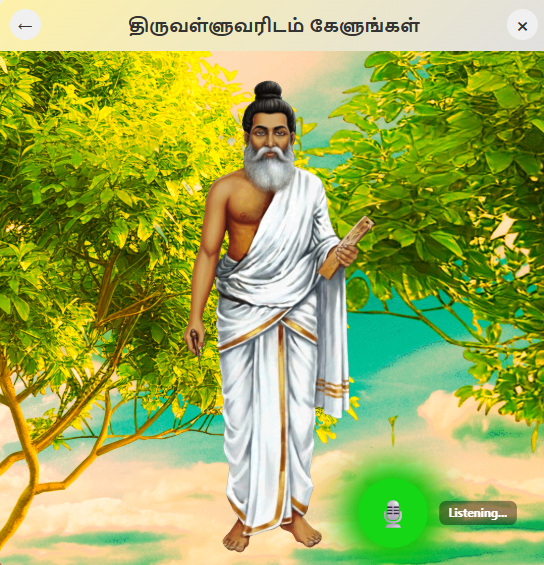 Integrated with our Gemini backend, the AI can access and analyze the entire Thirukkural, providing precise and context-aware recommendations tailored to each user’s question or scenario. Whether seeking moral guidance, life advice, or situational insights, the system delivers accurate and meaningful answers in the user’s preferred language.